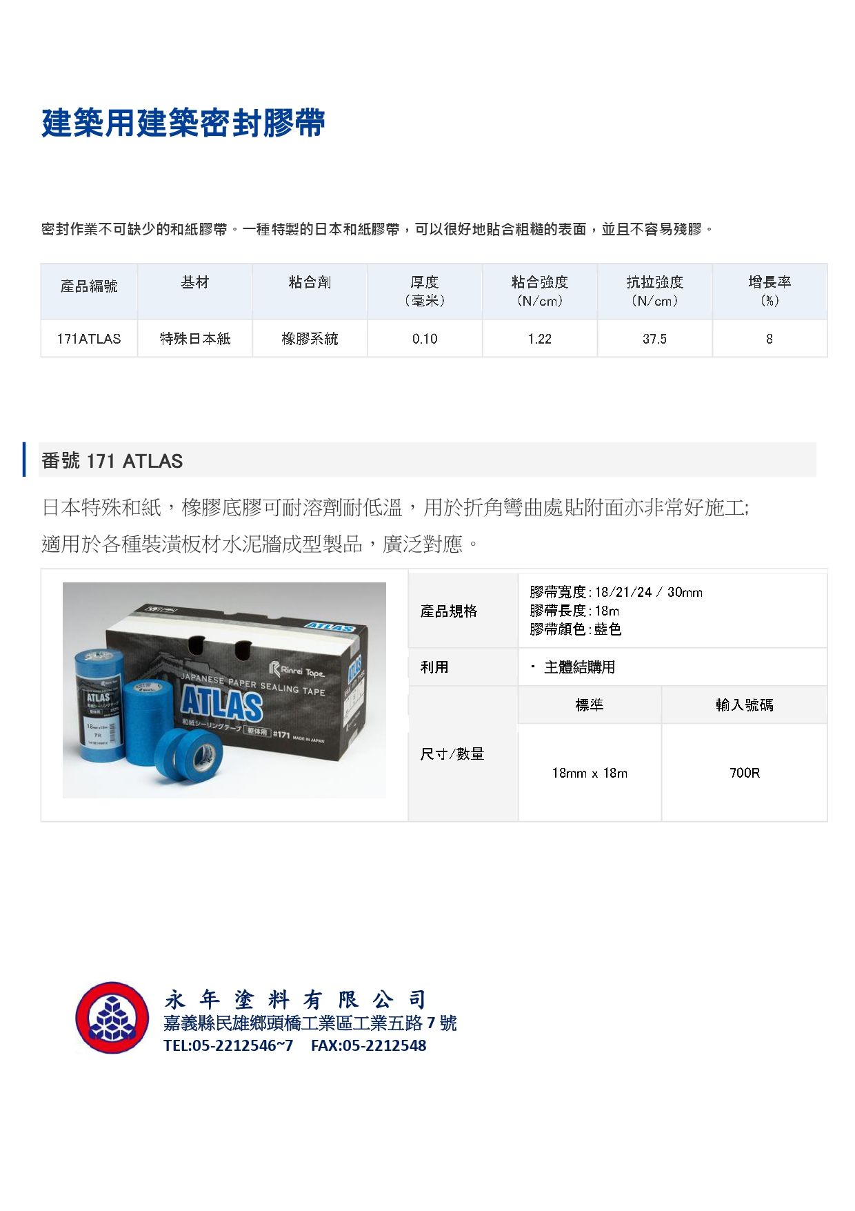 171 ATLAS日本特殊和紙膠帶